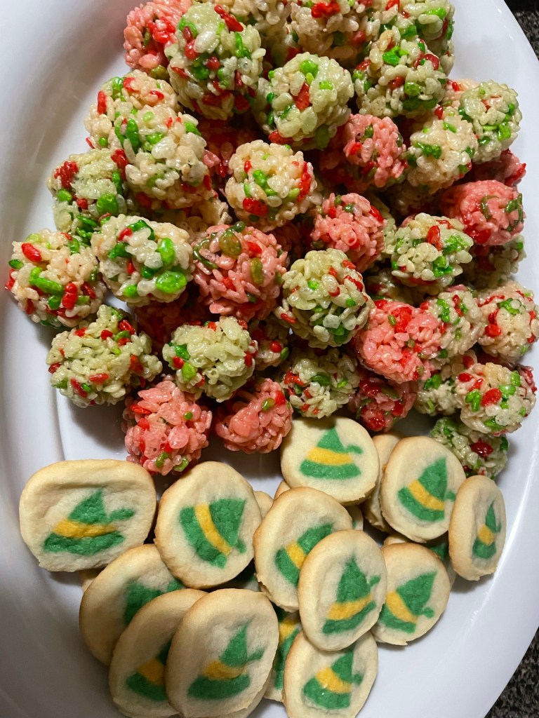 The top of this photo is Christmas Rice Crispy Balls. They turned out super yummy, and honestly, I find the homemade ones better as they don’t have as much sugar in them.