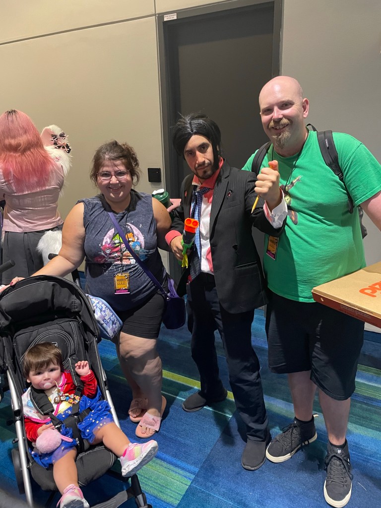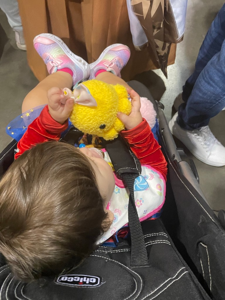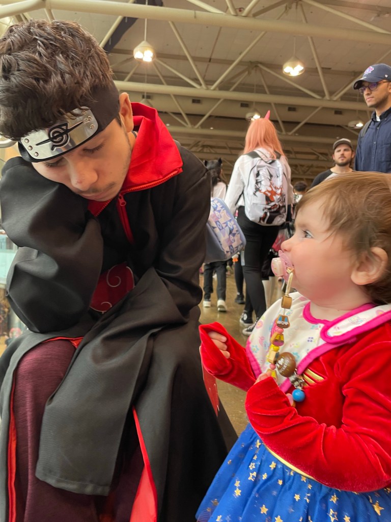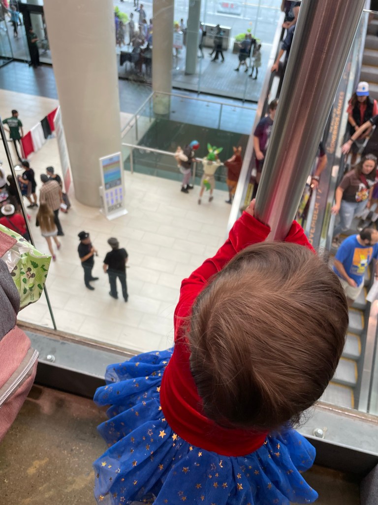 This year was my Daughters and my Nephews first time at Fan Expo! Let me tell you now… dealing with a toddler at such a large exhibit is super difficult. Between her wanting to be fed, fighting her naps, wants to run around and not sit in the stroller, throwing things out of the stroller, sticking her leg out kicking people by mistake, trying to be able to look at stuff but too many people around and thin aisles.. accidentally hitting people with the stroller and the long line ups to get from one building to the other and trying to find a way around that is stroller friendly. At the end of the day, it was overall fun despite the struggles.