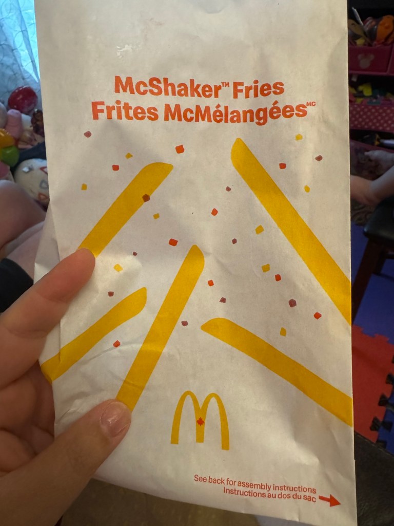Each order of the McShaker fries will come with a separate bag, this is where you would put the fries, the seasoning and shake shake shake till its evenly coated.